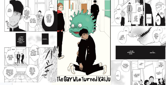 Arashiro is a closeted high schooler and ruthlessly bullied. When he hears his trusted teacher talk about how much gay people are disgusting, Arashiro’s head turns into a Kaiju, and he begins to lash out at those around him. He goes from a quiet kid to someone who is both literally and figuratively a monster.